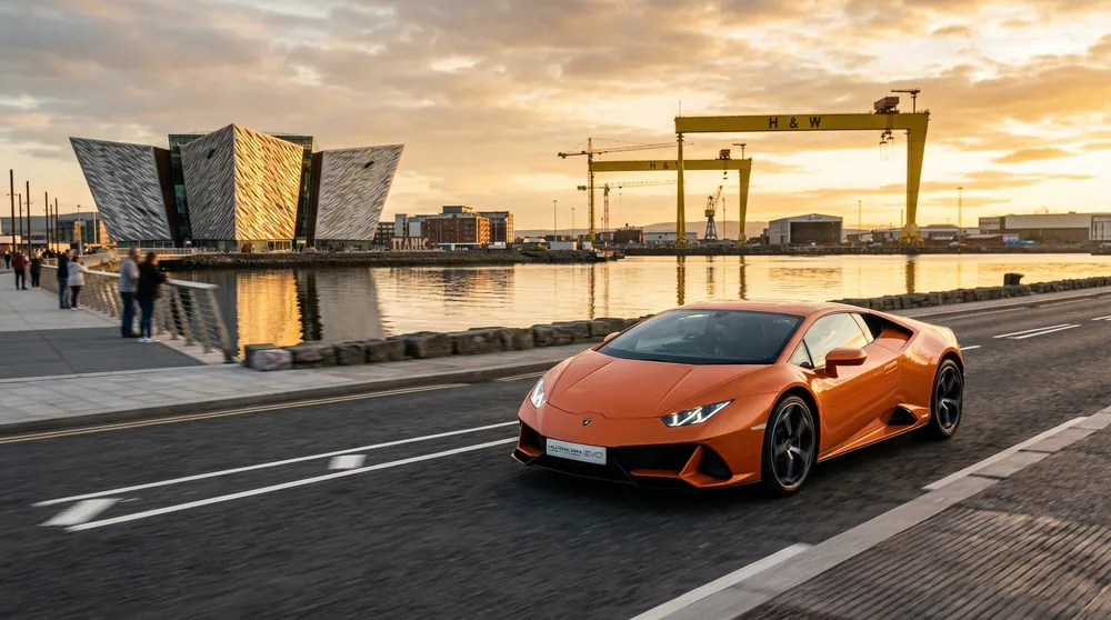 Belfast International Airport pickups welcome. CAZ-compliant handover points across the city centre. From Ferrari 488 Spider to Lamborghini Huracán — choose your County Antrim supercar experience.
