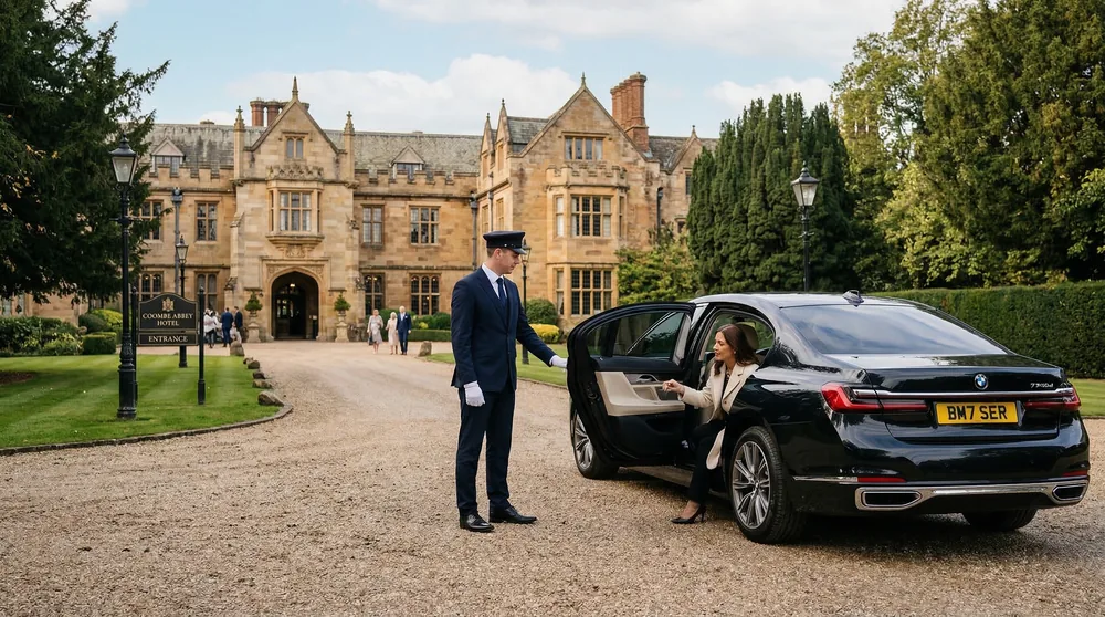 Coventry's event venues — CBS Arena (CV6 6GE, 32,600 capacity), Coombe Abbey Hotel (CV3 2AB, 500-acre estate, premier weddings), Coventry Cathedral (CV1 5FB, medieval ruins and modern cathedral), and the Coventry Transport Museum — are all within 15 minutes of the city centre. Our chauffeurs know the approach roads, parking arrangements, and entrance protocols at each venue.