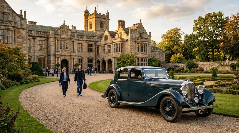 Kenilworth Castle, 5 miles south of Coventry, is an English Heritage property with 900 years of history — from medieval fortress to Elizabethan pleasure palace. The castle grounds and restored Elizabethan garden provide a dramatic backdrop for vintage car photography and heritage celebrations. A Bentley Continental GTC arriving through the castle approach lane is a quintessentially English moment. Wedding and private event access is available via English Heritage.