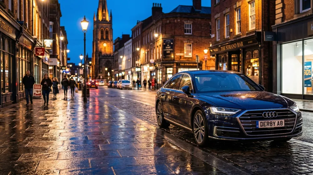 We deliver hourly hire vehicles to addresses across Derby and the surrounding area, including: Allestree, Darley Abbey, Littleover, Mickleover, Oakwood, Spondon, Chellaston, Mackworth, Normanton, Chaddesden, Alvaston, Boulton, Sunny Hill, Belper, Ilkeston, Long Eaton, and Castle Donington. Collection from any Derby postcode is included in the hourly rate at no additional charge. For events at Pride Park Stadium, we recommend delivery to your home address one hour before departure. We also serve nearby Nottingham, Leicester, Stoke-on-Trent, and Sheffield.