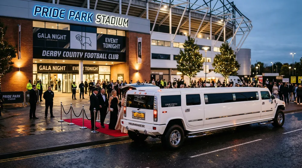 Pride Park Stadium sits just east of the city centre off the A52 Pentagon Island. Our limousine service handles corporate matchday transfers — collecting groups from Cathedral Quarter hotels, delivering them to hospitality lounges with precision timing, and managing post-match departures. The Phantom EWB and V-Class are the most requested vehicles for Derby County corporate packages.
