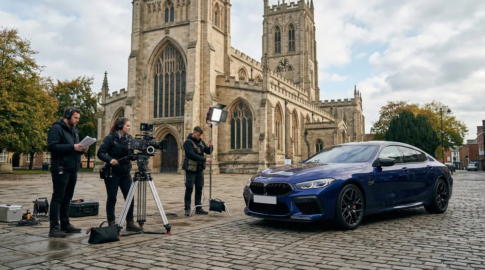 Conisbrough Castle, Cusworth Hall, and the Don Valley provide dramatic backdrops for music video and fashion shoots. Quick-turnaround productions (half-day to single-day) benefit from our Doncaster base — vehicles arrive detailed and positioned within 2 hours of confirmation, with flexible return arrangements that accommodate overruns.