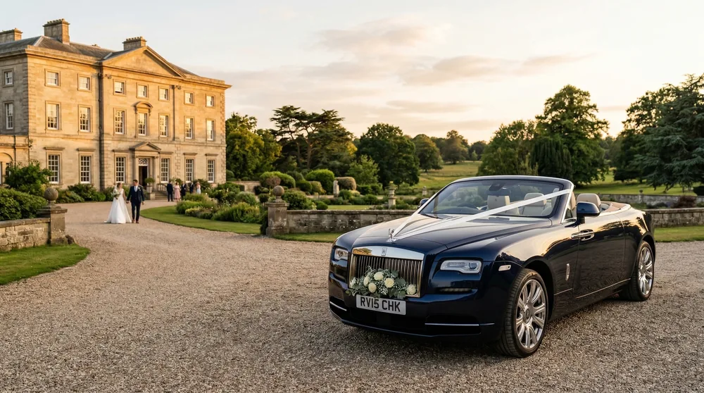 LuxuryCarHire.Club provides wedding car hire across Doncaster and South Yorkshire from £899/day. Arrive at Owston Hall in a Rolls-Royce Phantom along the tree-lined drive through Owston parkland, collect from Doncaster Minster in a Bentley Continental GTC, or make a dramatic departure from Cusworth Hall in a Ferrari 488 GTB. Self-drive or chauffeur arrangements with complimentary ribbons and venue coordination. Call 020 7123 4581 or WhatsApp to check availability for your date.