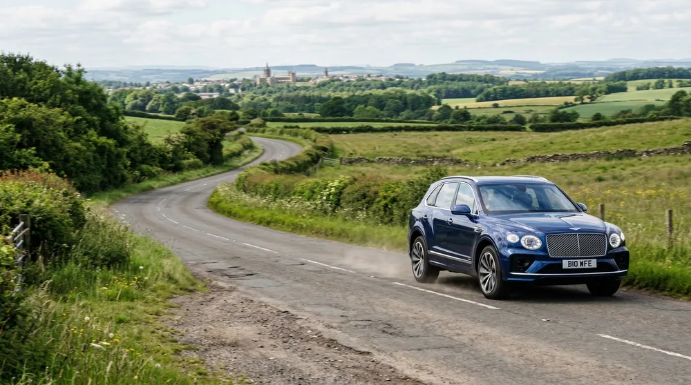 Range Rover Autobiography (from £2,800/month), Bentley Continental GT (from £4,500/month), Mercedes S-Class (from £2,400/month), Porsche Cayenne (from £2,600/month), Mercedes-AMG G63 (from £3,500/month). Insurance, maintenance, delivery included. Range Rover most popular — handles M90 Edinburgh commute and Fife country roads equally.