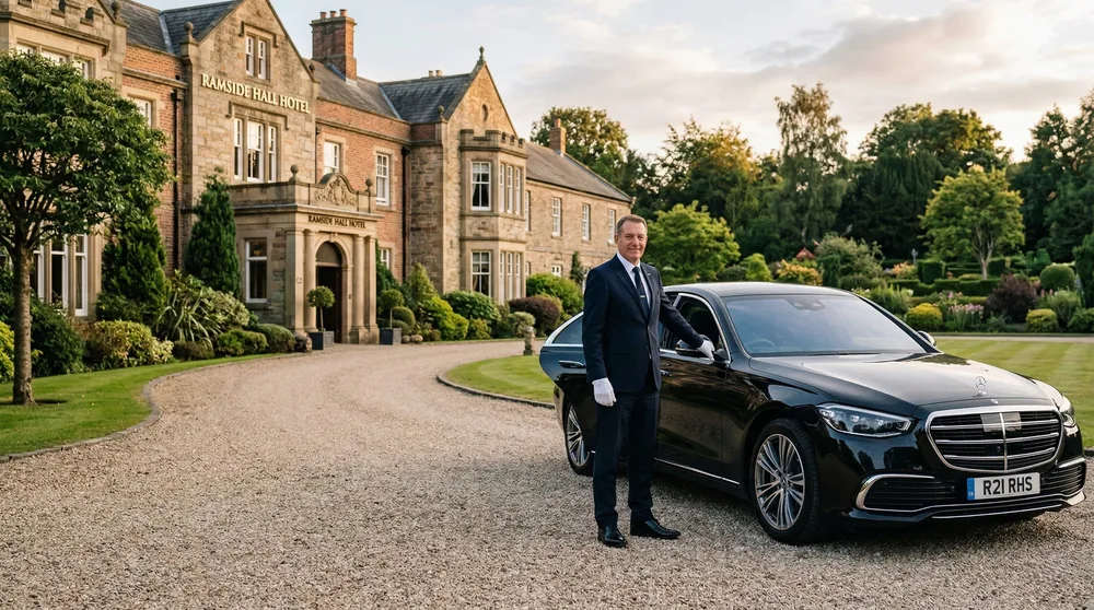 County Durham's only five-star hotel, Rockliffe Hall at Hurworth-on-Tees is the region's premier destination for corporate retreats, board dinners, and spa weekends. Our chauffeur service handles point-to-point transfers from Durham city centre (13 miles), Newcastle International Airport (NCL), and Teesside International Airport (MME) to Rockliffe Hall's pillared entrance — a Rolls-Royce Ghost arrival that ensures every high-value client engagement begins on the right note.