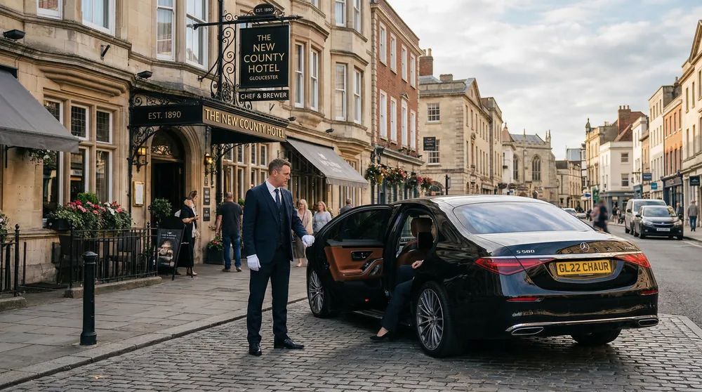 Gloucester and Gloucestershire host some of England's finest historic venues, five-star hotels, and corporate addresses — all served by our discreet chauffeur fleet.