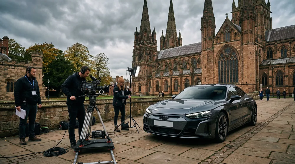 ““Used the Rolls-Royce Ghost for a brand campaign at Lichfield Cathedral Close. The three spires behind the car created the exact premium feel the client wanted. Coordinator handled all vehicle positioning — crew access from Birmingham was straightforward via the A38.””