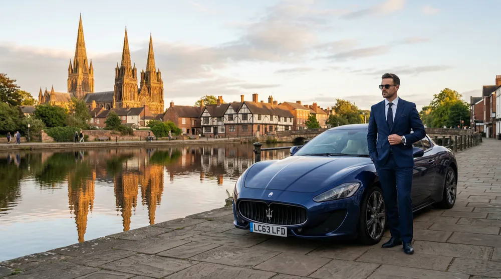 LuxuryCarHire.Club provides supercars and luxury vehicles for photoshoots across Lichfield and Staffordshire. The three-spired Lichfield Cathedral skyline, Cannock Chase AONB’s heathland and ancient woodland, Swinfen Hall’s Georgian parkland, and the Roman ruins at Wall deliver diverse architectural and natural backdrops within 5 miles. Ferrari F8 Tributo, Lamborghini Huracan Evo, McLaren 720S available from £795/day.