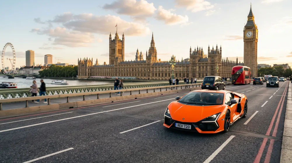 LuxuryCarHire.Club delivers self-drive supercars across London from £795/day. Take a Ferrari F8 Tributo south on the A3 through Surrey to Box Hill — 30 minutes of sweeping country roads from central London. Drive a Porsche 911 GT3 RS on the M25 to Brands Hatch in 45 minutes, or cruise the M4 corridor to Silverstone in a McLaren 720S. Five airports within 35 miles. Congestion Charge (£15/day) and ULEZ (£12.50/day) guidance provided — modern supercars are Euro 6 petrol compliant and exempt from ULEZ charges. Fully insured, delivered to your London address, with 150 miles included.