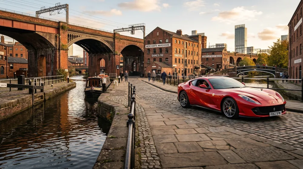 A supercar arrival in Manchester makes any birthday legendary. We've delivered Ferraris to Castlefield, the Northern Quarter, and the Gotham Hotel for celebrations of all sizes. Book for the day or the full weekend.