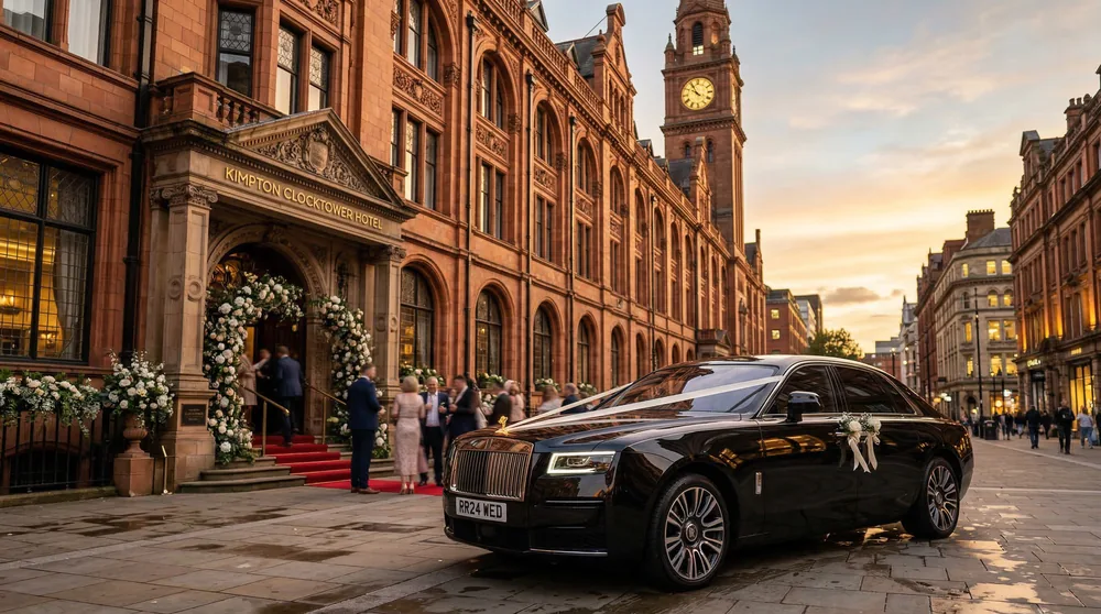 Arrive at your Yorkshire wedding in a Rolls-Royce Phantom, Bentley Continental, or Rolls-Royce Ghost. Serving Hazlewood Castle, Wood Hall, Goldsborough Hall, and every Manchester venue with grace and elegance.