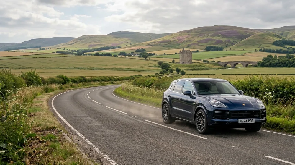 For those exploring Northumberland on an extended stay, the A1068 coast road runs 50 miles north to Bamburgh Castle with some of the most dramatic coastal scenery in England. The B6318 Military Road traces Hadrian's Wall for 45 miles through open Northumberland countryside. The A68 to Carter Bar — the Scottish border — climbs to 418 metres elevation over 45 miles. The A696 reaches Kielder Water and Forest Park, the largest man-made lake in northern Europe, 52 miles north-west. A Range Rover Autobiography or Porsche Cayenne makes these routes into genuinely rewarding driving experiences rather than mere transport. Extended hires for professionals combining work in Newcastle with weekend exploration of Northumberland and the Scottish Borders represent a significant share of our long-term bookings.
