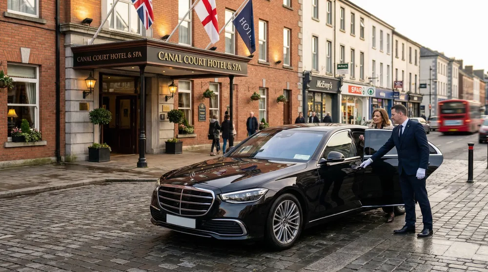 Newry's flagship four-star hotel sits on the banks of the historic Newry Canal — Ireland's oldest manmade waterway — in the heart of the city centre. The Canal Court is the natural choice for business events, corporate dinners, and formal occasions in Newry. Our chauffeur service provides seamless hotel-to-airport transfers and event transport to and from this landmark venue.