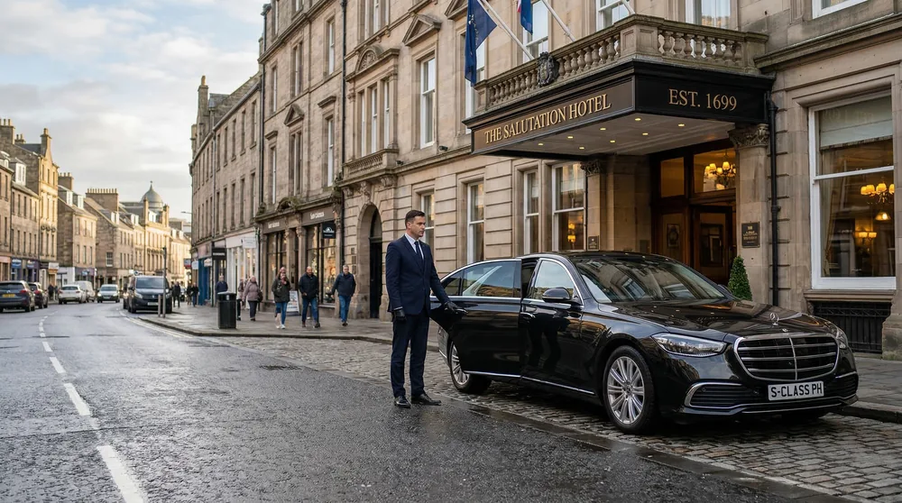 Perth sits at the heart of Scotland's finest executive chauffeur country. Our professional chauffeur fleet — Rolls-Royce Ghost, Bentley Flying Spur, and Mercedes S-Class — serves Edinburgh Airport (EDI) transfers daily, provides corporate accounts to Gleneagles Hotel and the Broxden Business Park, and delivers prestige transfers to Scone Palace, Perth Racecourse, and luxury estates across Perth and Kinross. The 45-mile Edinburgh Airport transfer runs smoothly on the M90 in approximately 50 minutes. For shorter journeys, Dundee Airport (DND) is just 12 miles from Perth. Perth has no Low Emission Zone, so our chauffeur vehicles travel freely throughout the city and the surrounding Highland estates.