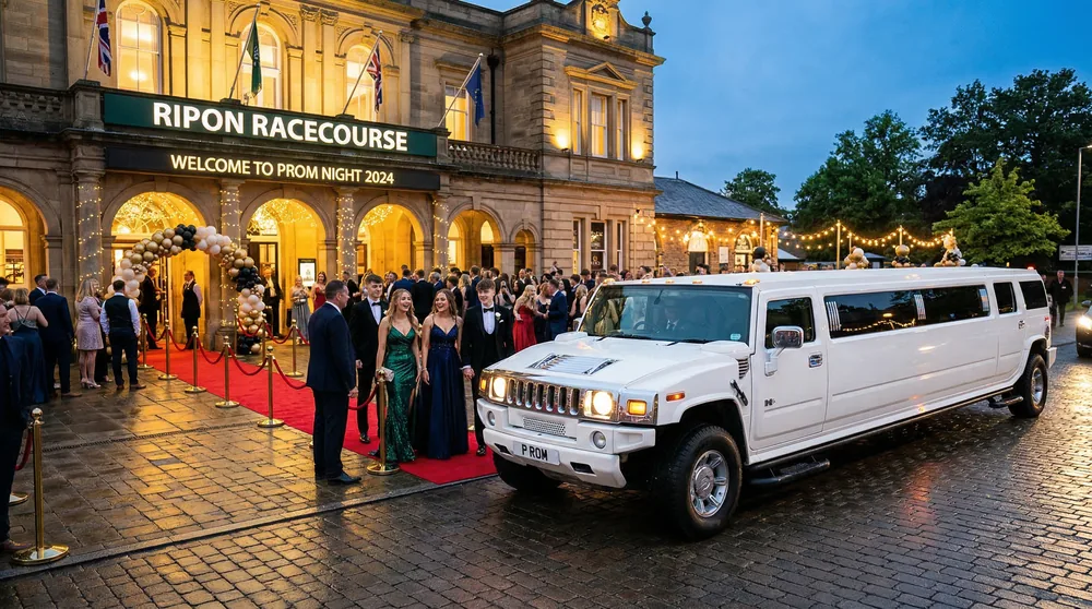 Harrogate schools — 12 miles south. We cover prom bookings from Harrogate Grammar, Rossett School, and St Aidan's for students in the Ripon area.