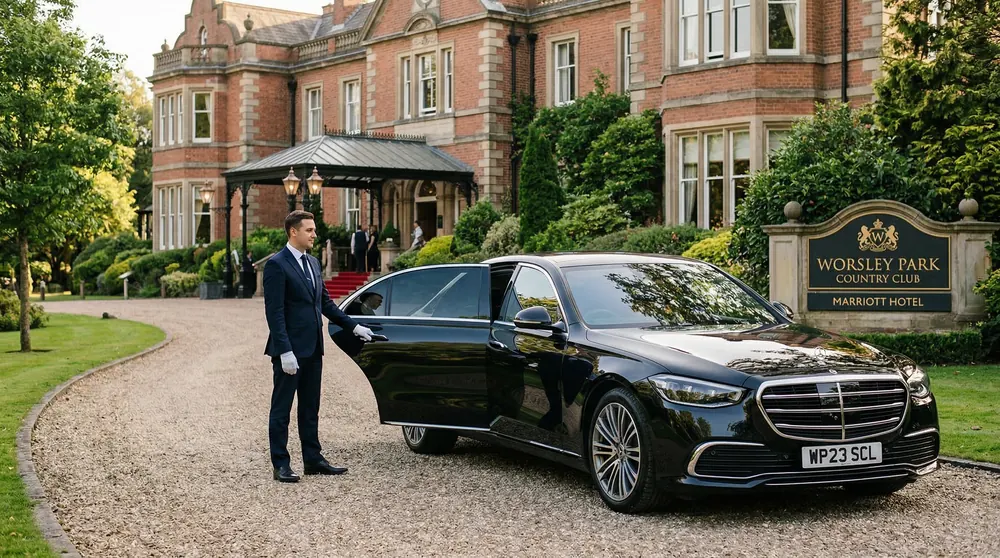 The Lowry Hotel on the banks of the River Irwell, Worsley Park Marriott Hotel and Country Club, Hotel Gotham in adjacent Manchester city centre — our Bentley and Rolls-Royce chauffeurs know every VIP entrance and protocol across these distinguished addresses.