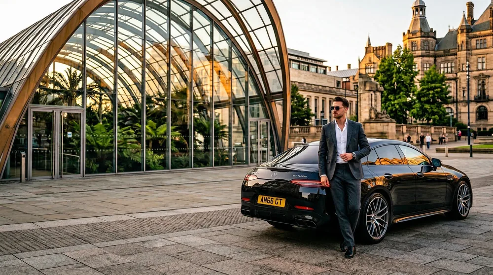 Luxury and supercar hire for photoshoots, brand campaigns, and content creation across Sheffield and the Peak District. Camera-ready vehicles delivered to your chosen location with flexible positioning and golden-hour scheduling. Kelham Island's industrial-Victorian architecture, the Peace Gardens' contemporary civic landscape, Stanage Edge's sweeping gritstone escarpment, and Chatsworth House's Capability Brown parkland provide a photographic range that spans from post-industrial grit to aristocratic grandeur within thirty minutes of Sheffield city centre. Photoshoot hire from £400/half-day, with Leeds Bradford Airport 40 miles north and East Midlands Airport 45 miles south for talent logistics.