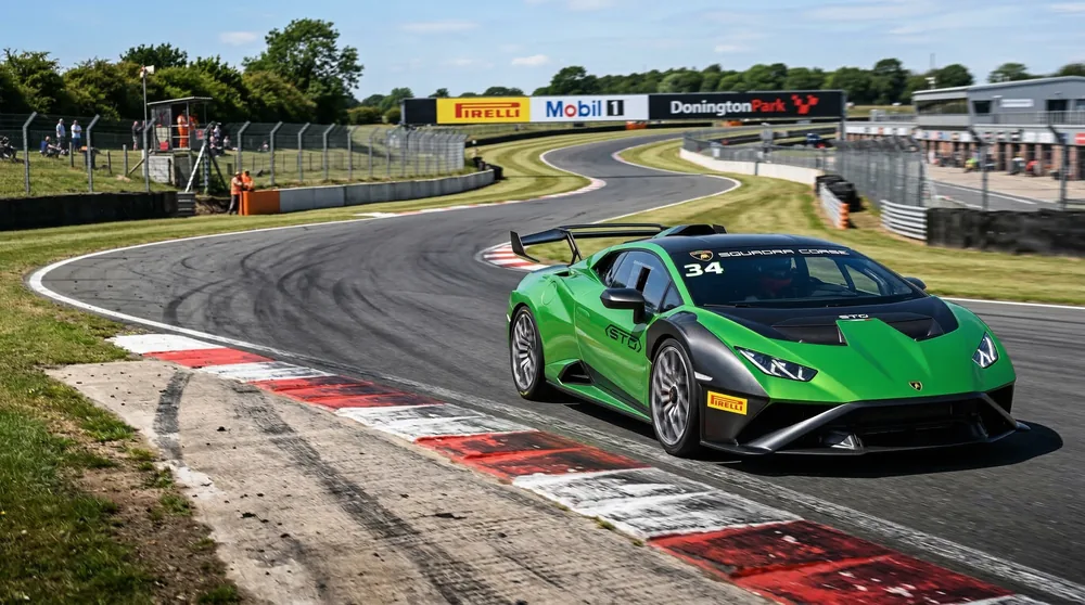 640 hp naturally aspirated V10, ALA active aerodynamics, rear-wheel drive. The Huracan Performante set a Nürburgring production car lap record in its era. At Blyton Park's open circuit it produces one of the great supercar sound experiences. On a technical circuit like Cadwell Park, its balance and mid-corner composure reward every progression in confidence.