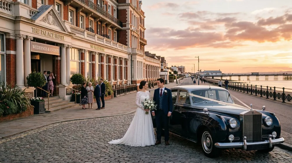 For the Park Inn Palace Hotel, the approach along the Western Esplanade past the pier creates one of the most distinctive wedding car arrivals in Essex. The pier — at 1.34 miles the longest pleasure pier in the world — serves as a visual anchor, and the approach from the west with the pier extending into the estuary on the left is a moment our clients describe as the highlight of their wedding day. Our chauffeurs coordinate with the hotel for the exact arrival position at the entrance.