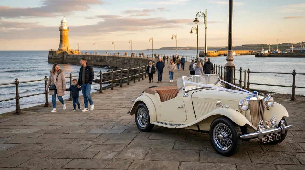 LuxuryCarHire.Club offers vintage car hire in Sunderland. Rolls-Royce Silver Cloud and Bentley S-Series for Lumley Castle weddings, Roker seafront occasions, and heritage events across Wearside. From £650/day with chauffeur. Lumley Castle’s 14th-century walls and Roker Pier’s Edwardian lighthouse provide naturally period-appropriate settings.