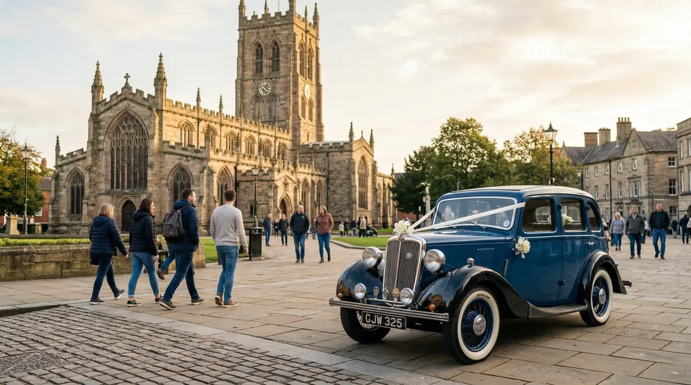 Ceremonies at St Peter's Church in the city centre, St Michael and All Angels in Tettenhall, or civil ceremonies at Mount Hotel Country Manor. A Rolls-Royce Silver Cloud III arriving at the church lychgate on a Saturday afternoon is the standard expected at traditional Wolverhampton weddings. Our chauffeurs coordinate timing with the venue's events team and know the precise positioning for photography at each location. Patshull Park Hotel, ten miles north-west in extensive parkland, is another popular wedding venue where vintage cars complement the Georgian architecture.